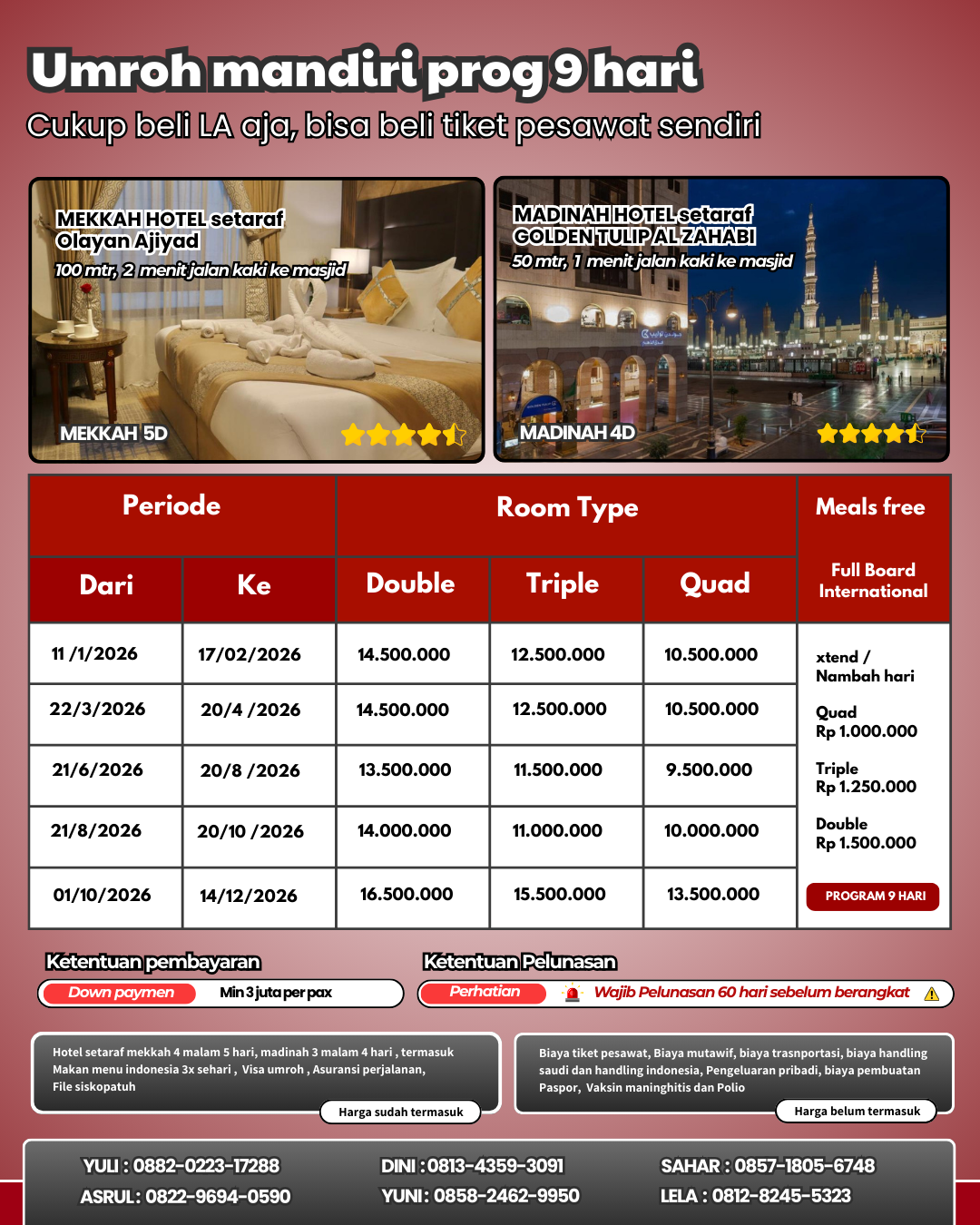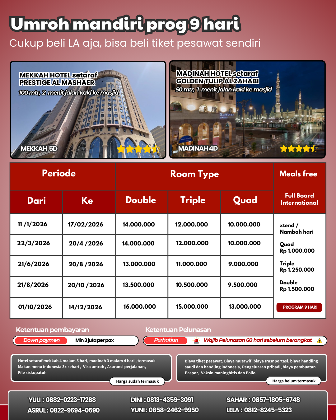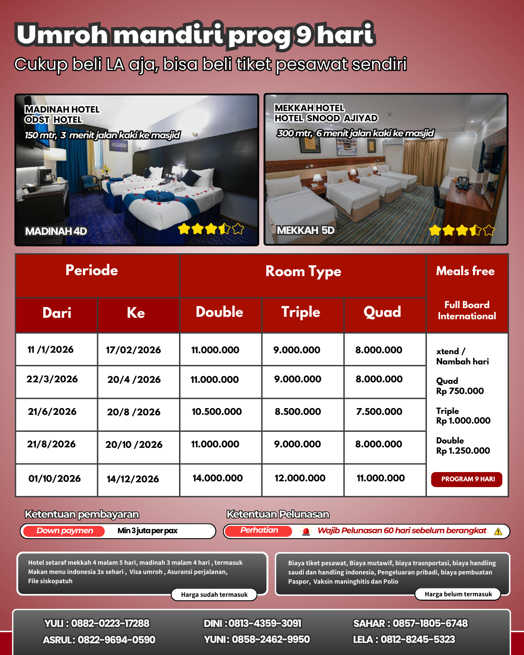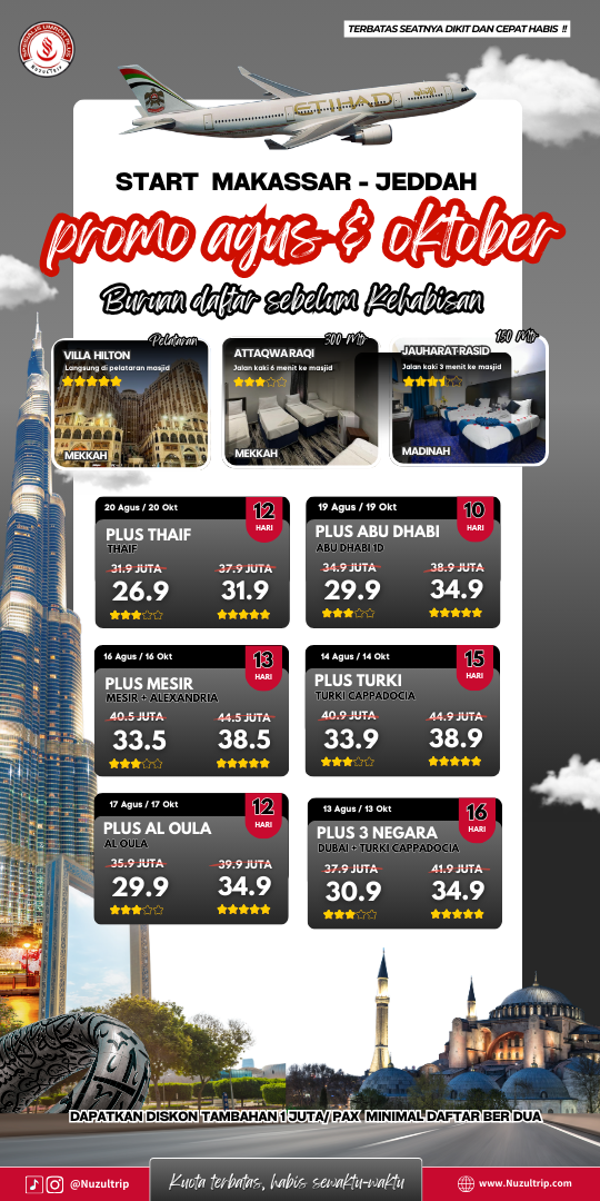 Promo keberangkatan agustus dan oktober Harga berlaku hingga 10 maret