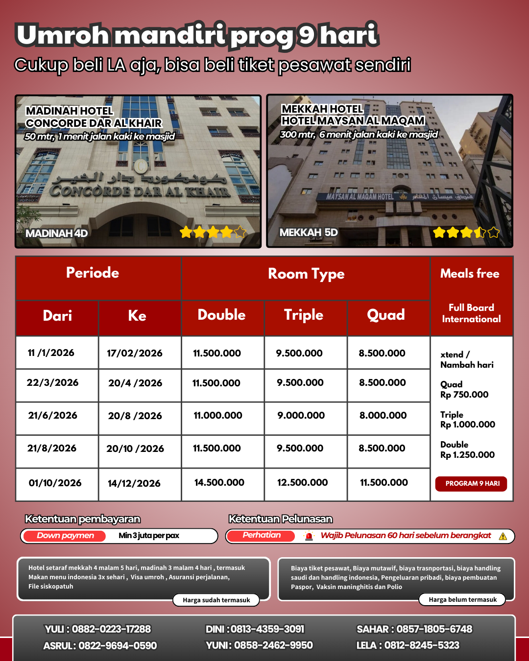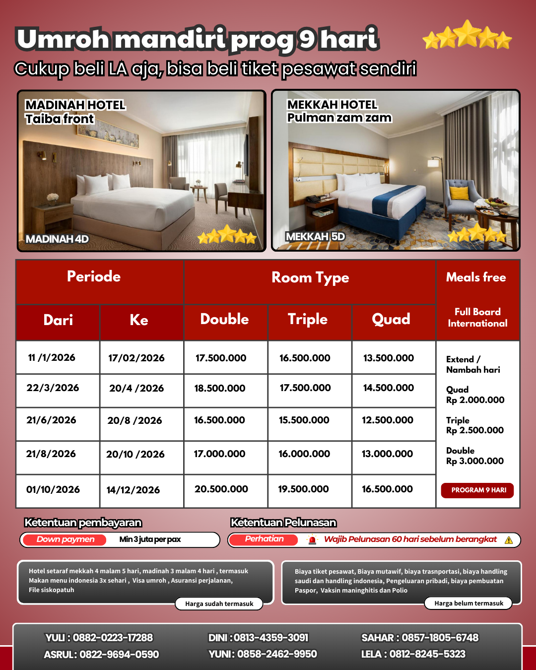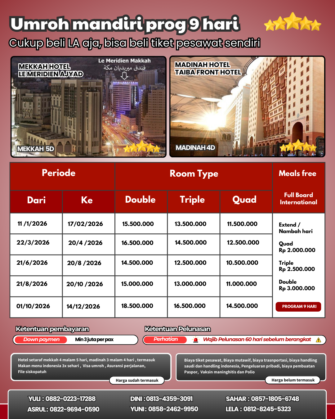 Promo keberangkatan agustus dan oktober Harga berlaku hingga 10 maret