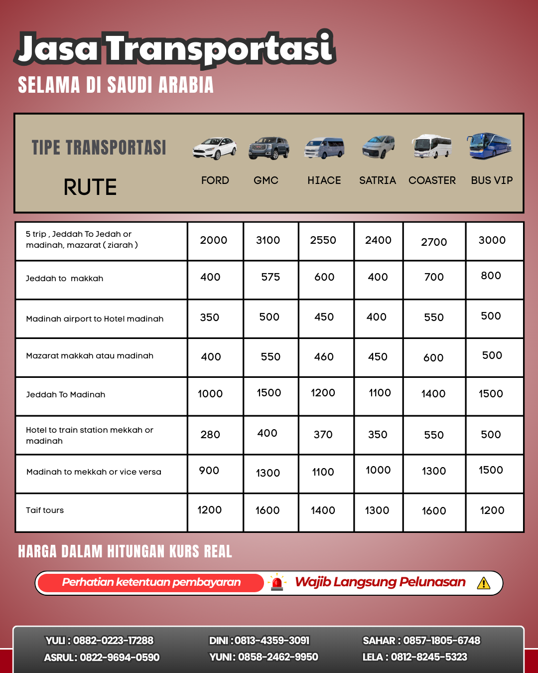 Melayani dari kedatangan hingga kepulangan selama di saudi, anda bisa jadi lebih fokus ibadah saja