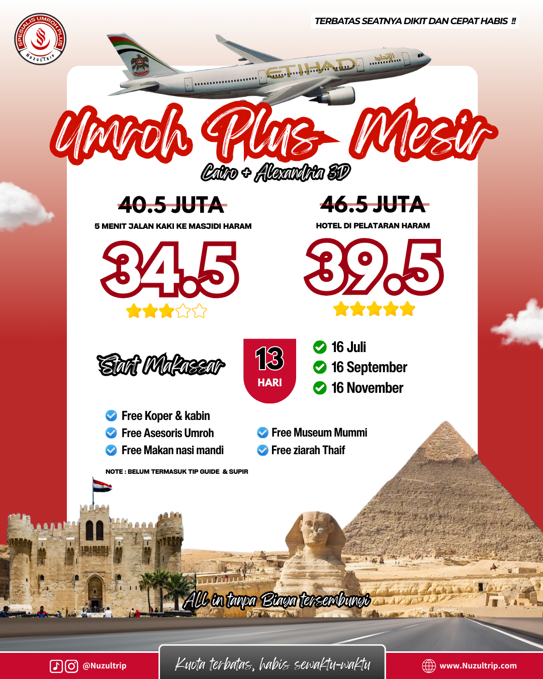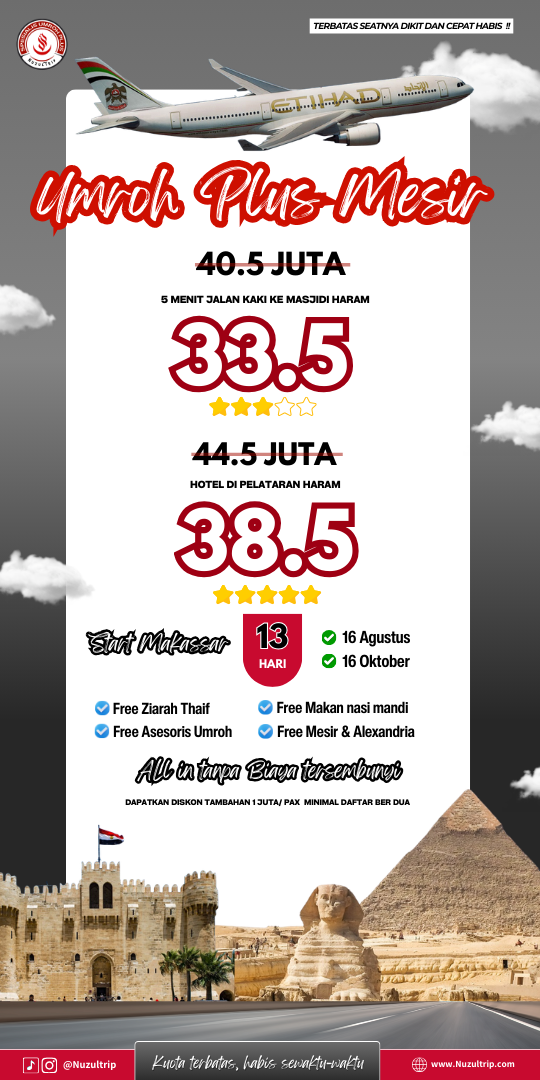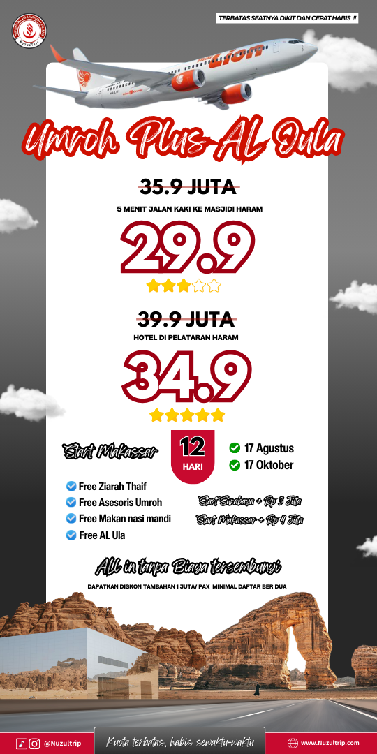 Dengan paket dari Nuzul Trip harga bersahabat dan pastinya umrohmu bakalan aman dan menyenangkan